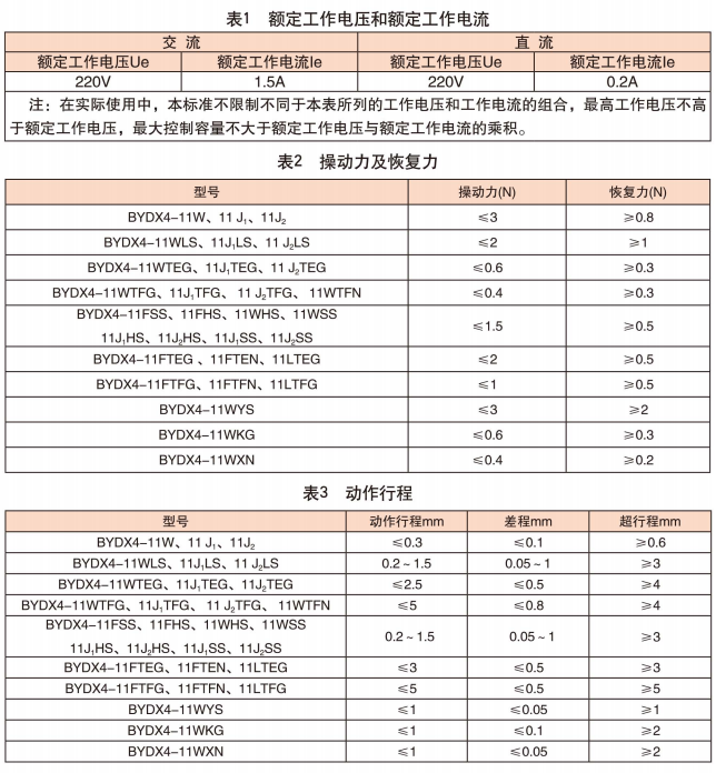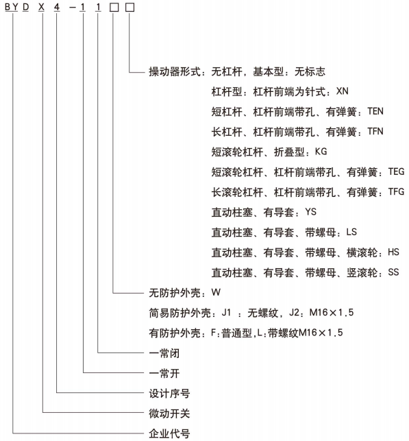 BYDX4系列微動開關(guān),適用于交流380V (50Hz~ 60Hz)及以下、直流110V及以下的控制電路中,作為控制運動機構(gòu)和變化其方向或速度之用。