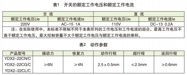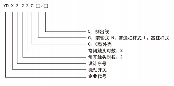 YDX2-C系列微動開關,適用于交流220V (50Hz~ 60Hz)及以下、直流110V及以下的控制電路中,作為控制運動機構和變化其方向或速度之用。